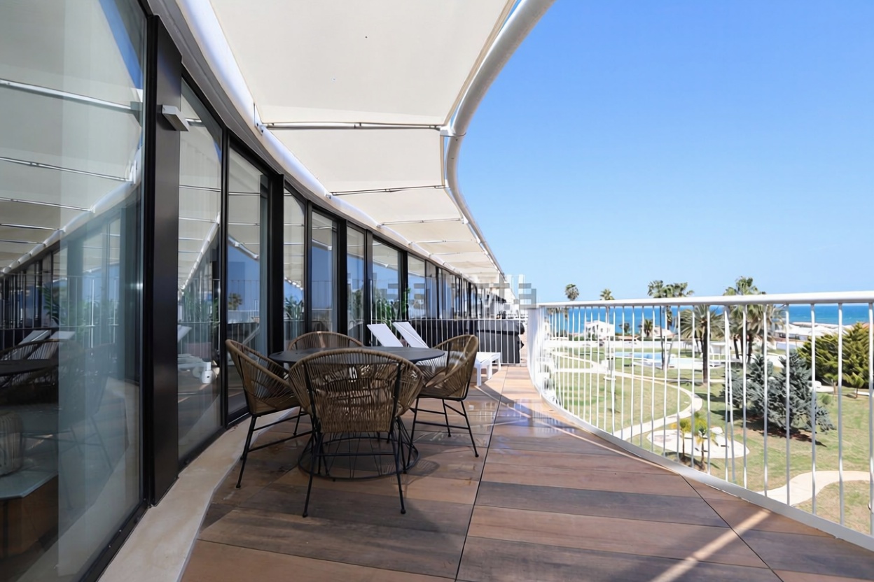Discover this spectacular 91 m ² apartment, located in the front line of the sea. With 2 bedrooms and 2 bathrooms, this property offers an ideal space to enjoy life on the coast. The terrace is perfect for relaxing and looking at the stunning sea views. It includes a garage space and a storage room, all in a 2020 building with central heating and air conditioning. Access adapted for people with reduced mobility, swimming pool and garden to enjoy with family and friends. Don't miss the chance to live in a privileged place!