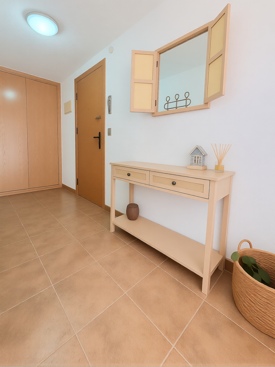 Descubre esta encantadora propiedad de 70 m² en primera línea de mar, ideal para disfrutar de la vida costera. Con 3 habitaciones y un baño, este hogar ofrece espacios bien distribuidos y luminosos gracias a su orientación sureste. La terraza es perfecta para relajarse mientras contemplas las vistas al mar. Incluye una plaza de garaje y acceso a piscina y jardín, todo en un edificio que cuenta con ascensor. En buen estado y con armarios empotrados, es una oportunidad única para vivir cerca del mar en un entorno tranquilo y agradable. ¡No dejes pasar esta oportunidad de tu nuevo hogar en la playa!