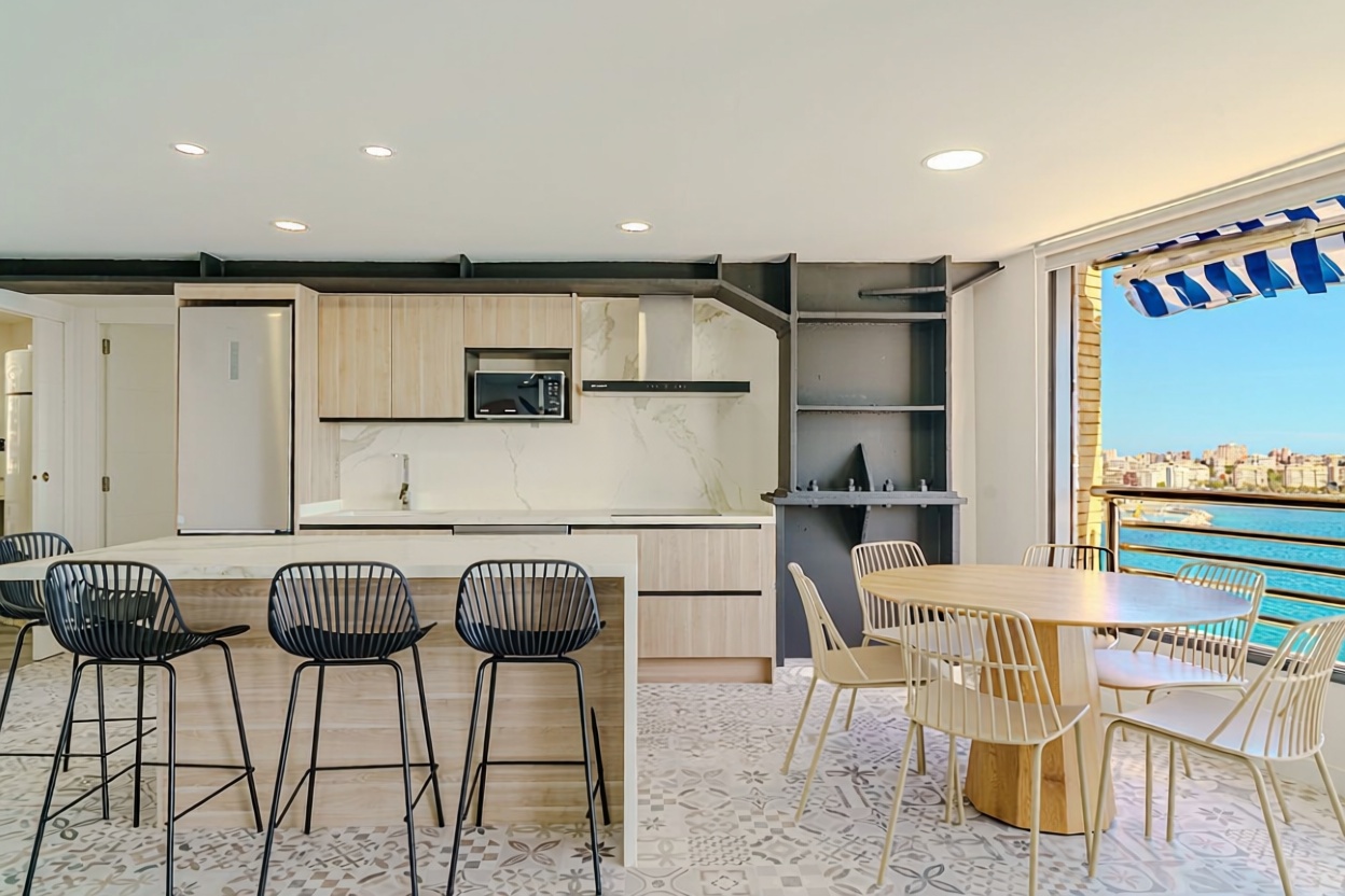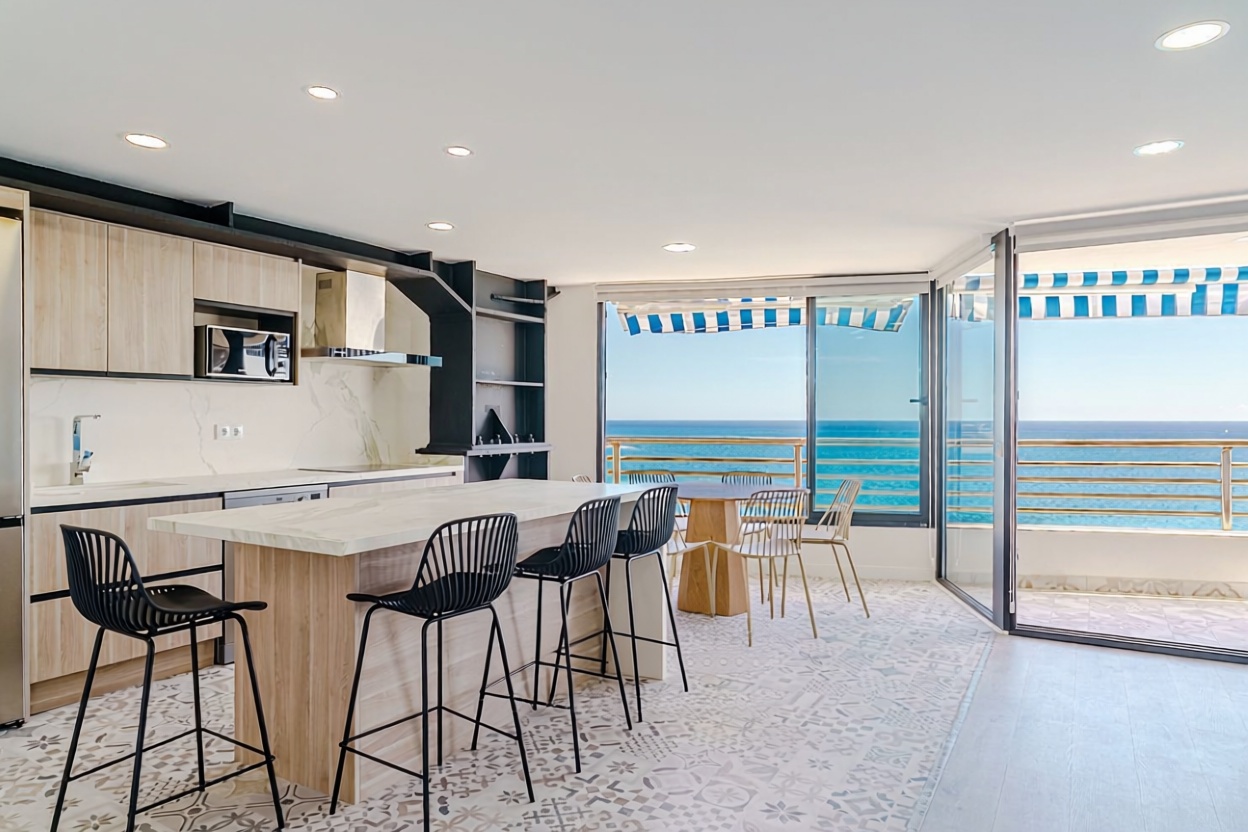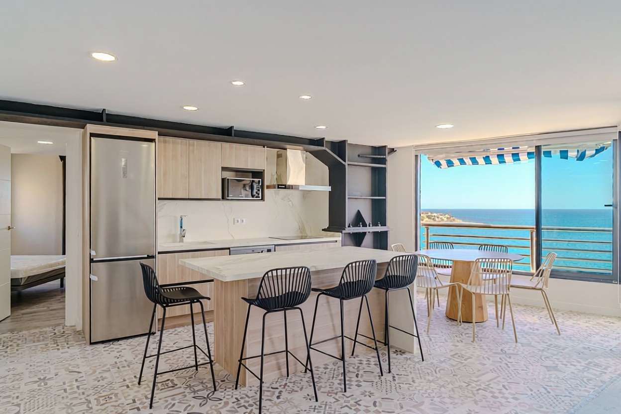 Descubre este espectacular apartamento en primera línea de mar, con 154 m² construidos que ofrecen un espacio ideal para disfrutar de la vida costera. Con 3 habitaciones y 2 baños, es perfecto para familias o como inversión. Su amplia terraza te permitirá deleitarte con impresionantes vistas al mar, mientras que la orientación sur garantiza luz natural durante todo el día. Equipado con calefacción individual por bomba de frío/calor y aire acondicionado, disfrutarás de un ambiente acogedor en cualquier época del año. Además, cuenta con acceso adaptado para personas con movilidad reducida y ascensor. ¡No pierdas la oportunidad de vivir en este paraíso junto al mar! Plaza de garaje disponible por 25.000 € adicionales.