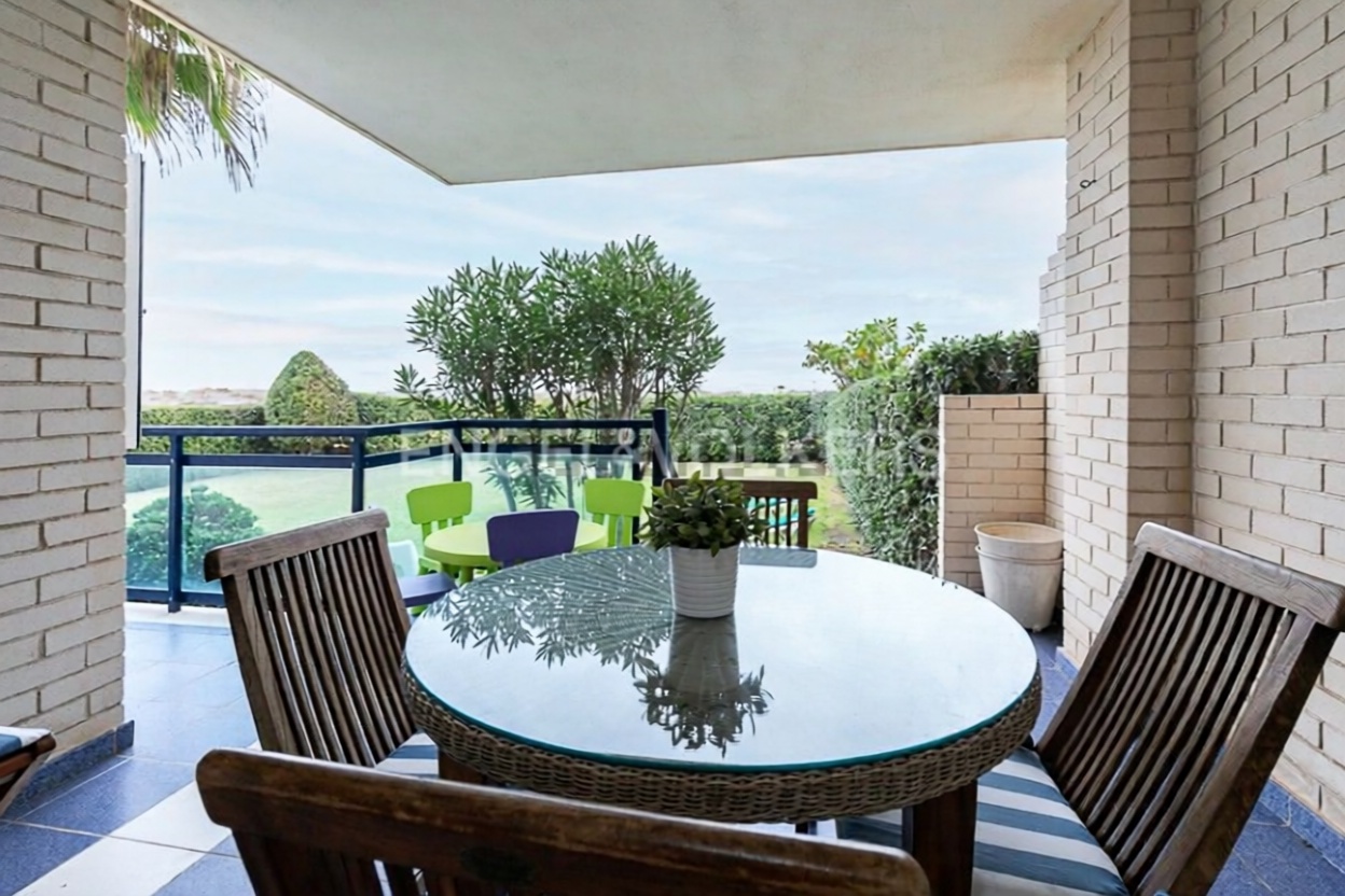 Descubre este espectacular apartamento de 119 m² en primera línea de mar, ideal para disfrutar de la brisa marina y vistas impresionantes. Con 3 habitaciones y 2 baños, este hogar ofrece un espacio acogedor y funcional. La terraza y el balcón son perfectos para relajarse al aire libre. Incluye plaza de garaje y cuenta con aire acondicionado y calefacción eléctrica para tu confort. Disfruta de la piscina y el jardín en un entorno tranquilo. ¡No dejes pasar la oportunidad de vivir junto al mar!