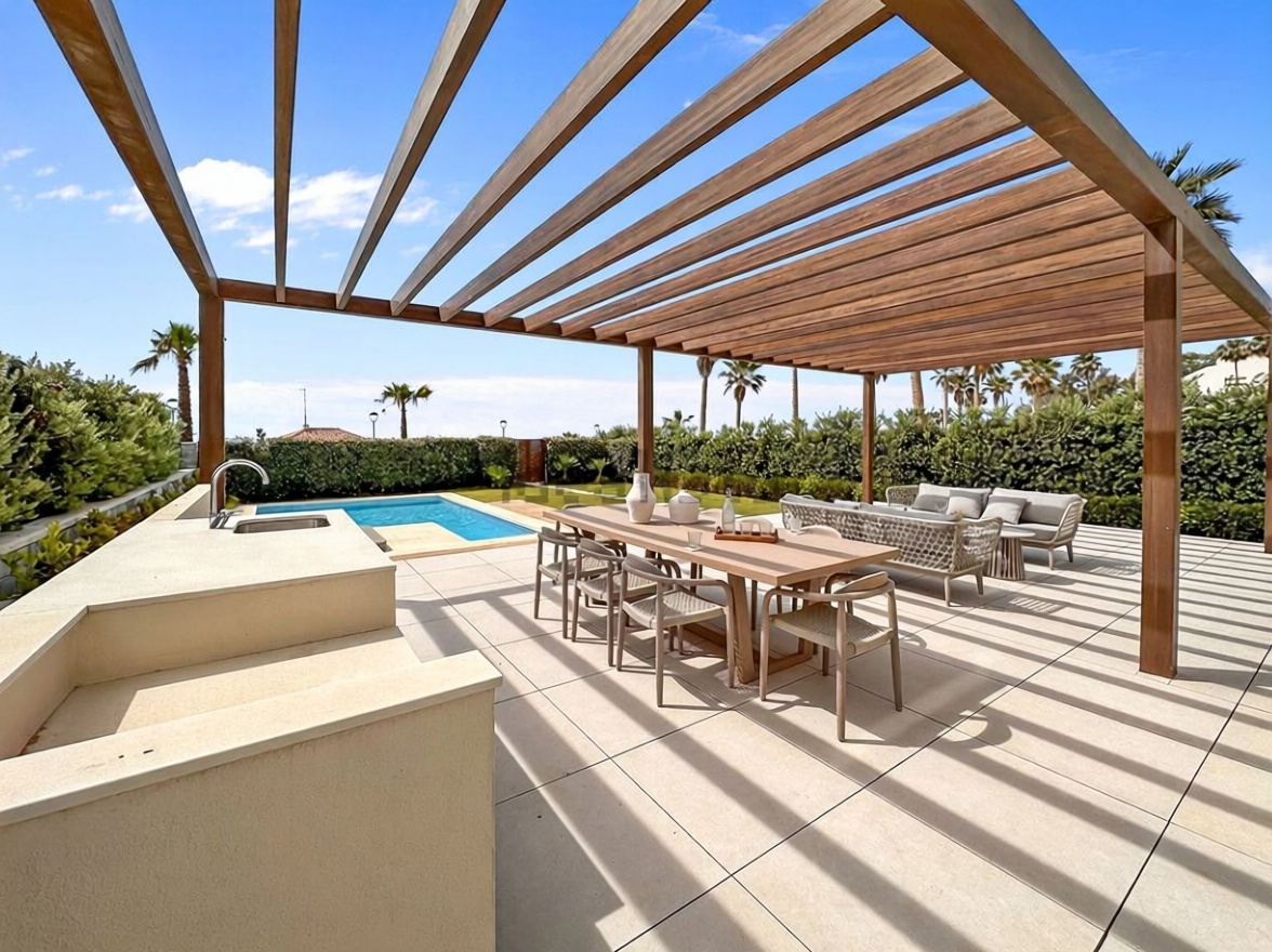 Descubre esta impresionante casa independiente de 371 m² construidos, ubicada en primera línea de mar. Con 5 amplias habitaciones y 4 baños, esta propiedad de 2023 es perfecta para disfrutar de la comodidad y el estilo. Su orientación sur garantiza luz natural durante todo el día, mientras que su piscina y jardín privado ofrecen un oasis de tranquilidad. Equipado con aire acondicionado y calefacción individual, cada rincón de la casa está diseñado para tu confort. Además, cuenta con plaza de garaje y acceso adaptado para personas con movilidad reducida. ¡No pierdas la oportunidad de vivir en un entorno privilegiado con vistas al mar!