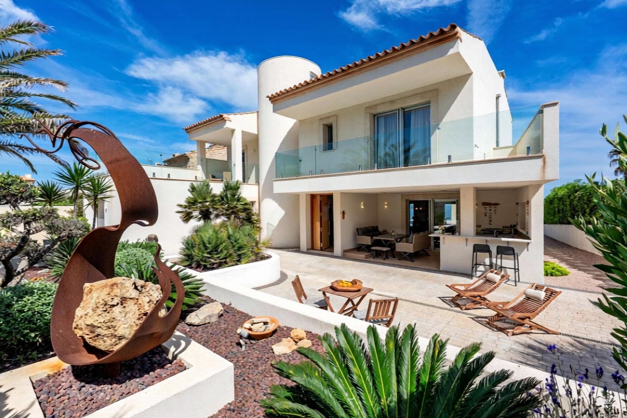 Descubre esta impresionante casa independiente de 452 m² construidos, ubicada en primera línea de mar. Con 4 amplias habitaciones y 5 baños, esta propiedad ofrece el espacio perfecto para disfrutar en familia. La parcela de 839 m² cuenta con una hermosa piscina y una terraza ideal para relajarte mientras admiras las vistas al mar. Construida en 2018 y en excelente estado, esta vivienda garantiza confort gracias a su calefacción individual y cuenta con un trastero para mayor comodidad. ¡No pierdas la oportunidad de vivir en un entorno privilegiado!