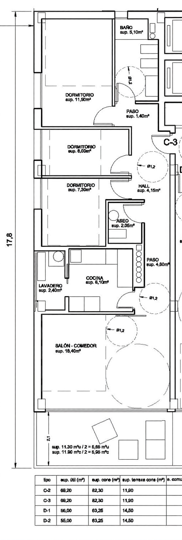 - 3 hab