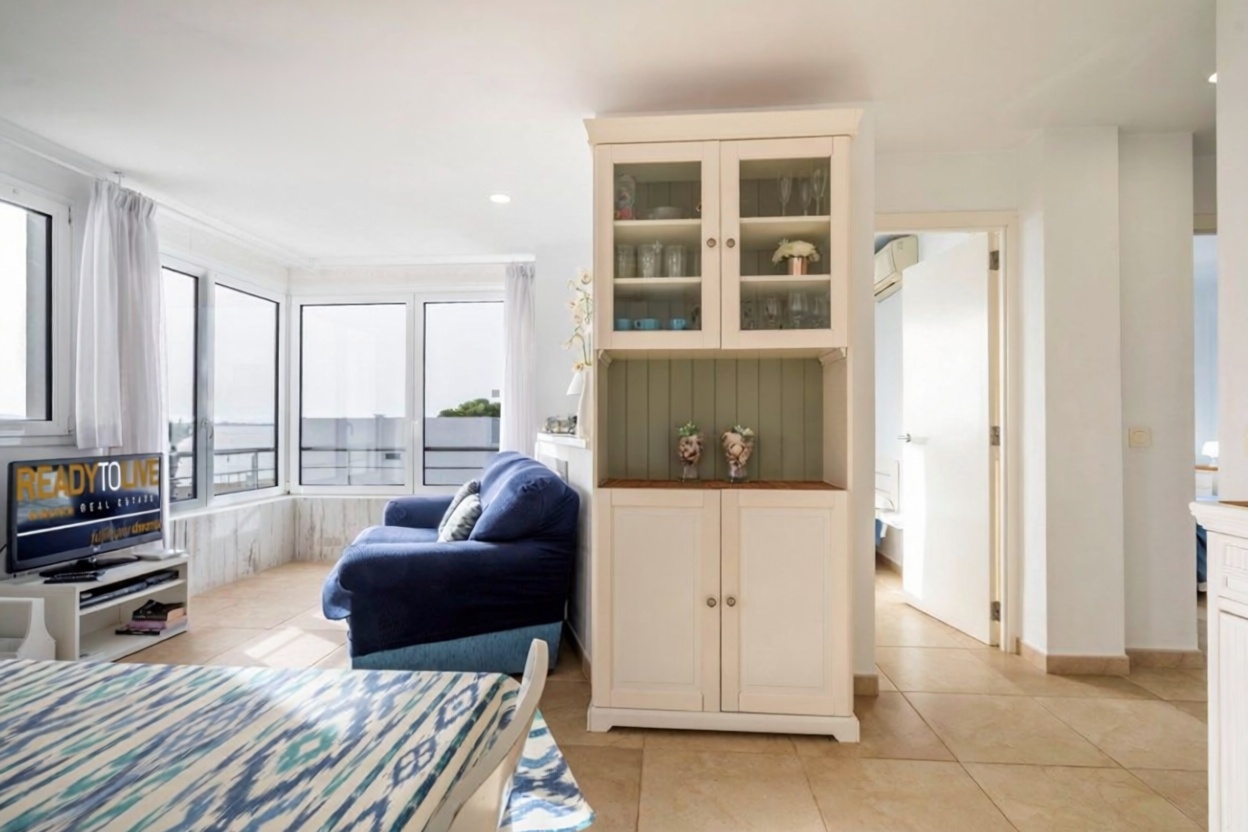 Découvrez ce charmant appartement de 114 m2 construit et 95 m2 utile, situé dans une première ligne de mer privilégiée. Avec 2 chambres, 2 salles de bains et une grande terrasse, cette maison est idéale pour profiter d'une vue spectaculaire sur la mer. Son emplacement au troisième étage extérieur, ainsi que la climatisation et les placards intégrés, en font un excellent choix pour vivre ou investir. Malgré l'absence d'ascenseur, la qualité de vie de cet espace est inégalée. Ne manquez pas la chance de vivre près de la mer !