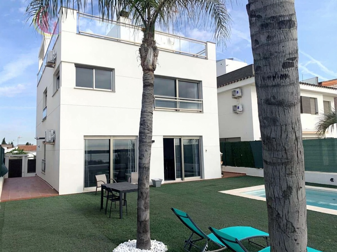 Découvrez cette magnifique maison en face de la mer, construite en 2009 et en excellent état. Avec 193 m2 construit et 156 m2 utile, cette propriété dispose de 3 chambres, 3 salles de bains et placards. Profitez de la lumière naturelle grâce à son orientation est-ouest et vous détendre sur sa belle terrasse avec vue sur la mer. La maison comprend un garage et une salle de stockage, ainsi que la climatisation et une piscine dans le jardin. Ne manquez pas la chance de vivre dans ce paradis côtier !