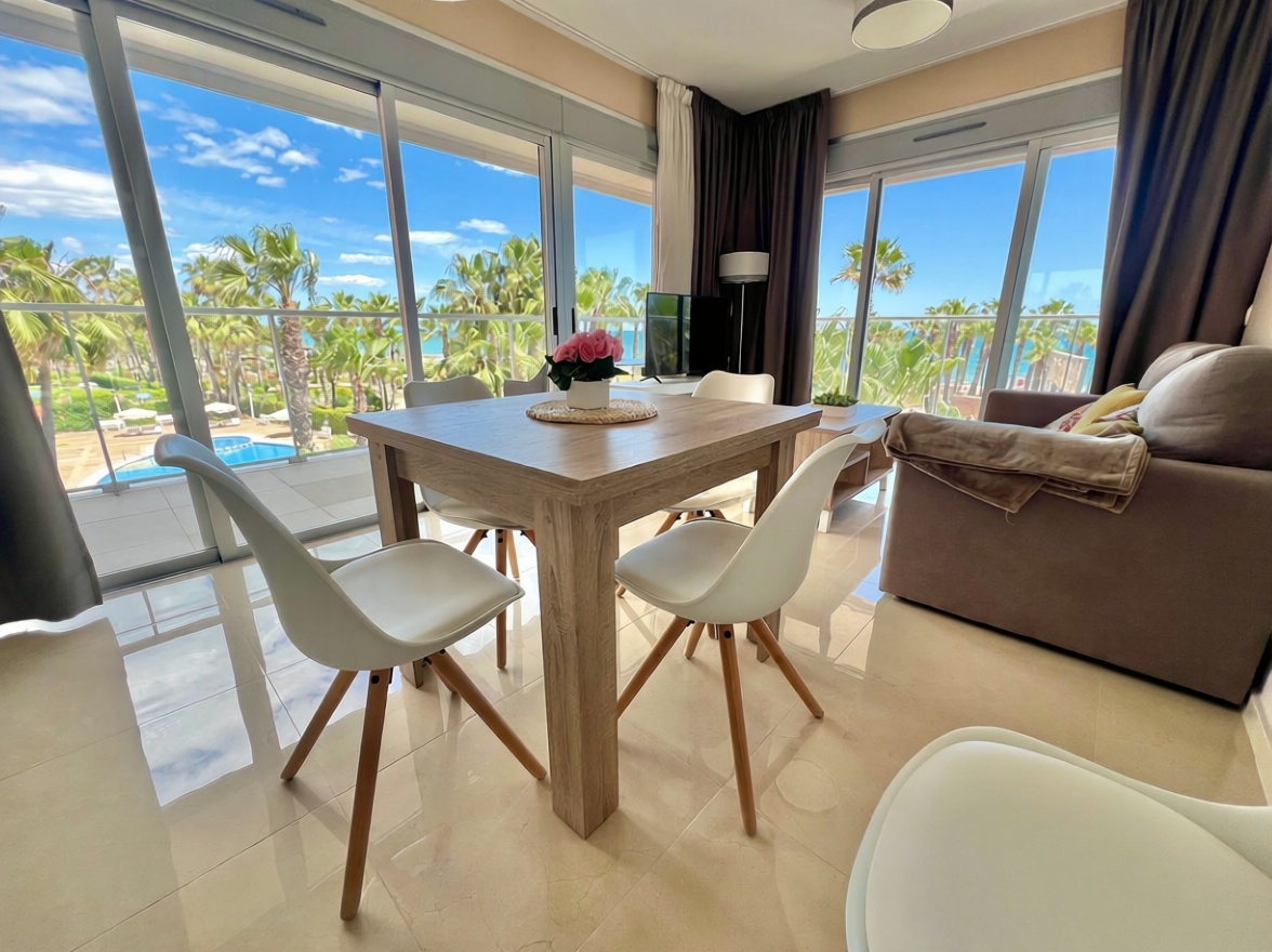 Découvrez votre nouvelle maison dans cette spectaculaire propriété de 101 m2 construite, située en première ligne de la mer. Avec 2 chambres et 2 salles de bains, cette propriété offre un espace idéal pour profiter de la vie sur la côte. Sa terrasse spacieuse est parfaite pour se détendre avec vue sur la mer. En outre, il dispose d'un parking inclus dans le prix, placards, climatisation et chauffage électrique individuel. Construit en 2020, il est en excellent état et sur un deuxième étage extérieur avec ascenseur. La propriété dispose également d'une piscine, ce qui en fait une option parfaite pour profiter de l'été. Ne manquez pas la chance de vivre près de la mer !