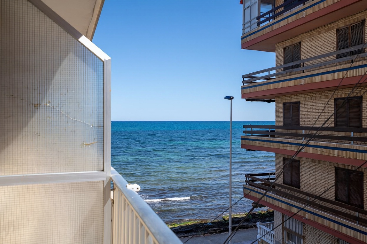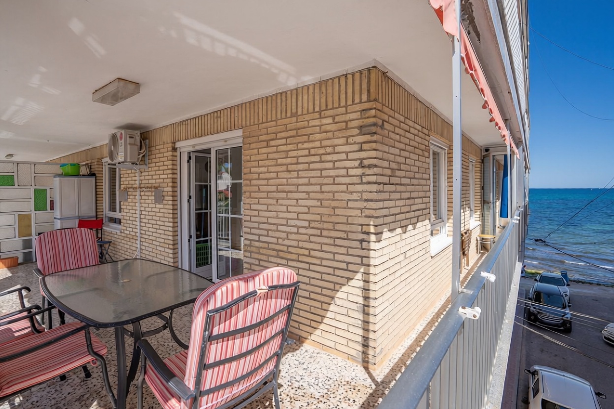 Bem-vindo a esta encantadora propriedade em primeira linha de mar, ideal para desfrutar da brisa marinha e vistas espetaculares. Com 69 m2 construídos e 62 m2 úteis, este apartamento acolhedor possui 3 quartos luminosos e um banheiro completo, perfeitos para famílias ou como investimento. O terraço e a varanda ampliam o seu espaço ao ar livre, oferecendo um lugar perfeito para desfrutar e desfrutar do ambiente. Localizado na primeira planta, com orientação norte e oeste, permite uma excelente entrada de luz natural. Equipado com ar condicionado e armários incorporados, esta propriedade de segunda mão encontra-se em bom estado, lista para se mudar. A apenas passos da praia, esta é uma oportunidade que você não vai querer se perder. Contacte-nos para mais informações!