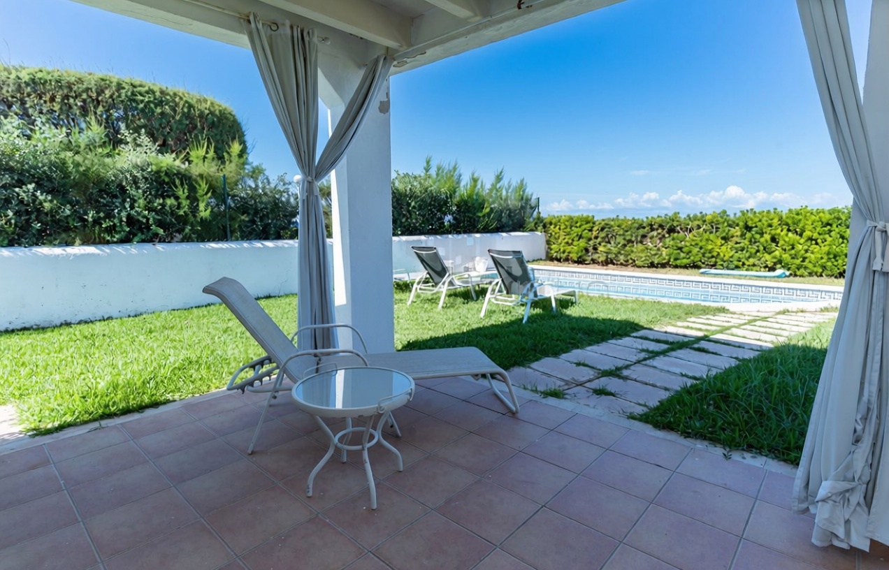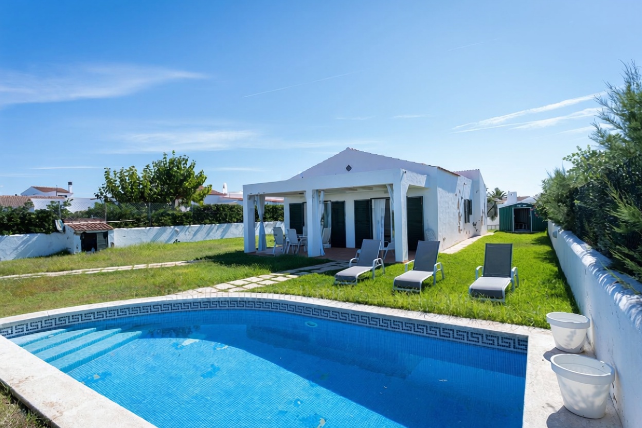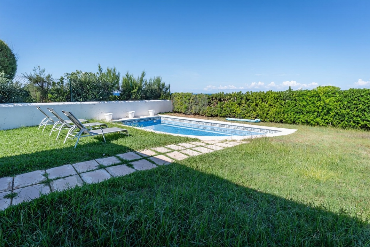 Descubra esta espetacular casa independente de uma planta, situada em primeira linha de mar. Com 90 m2 construídos e uma generosa parcela de 500 m2, esta propriedade conta com 3 confortáveis quartos e 2 banheiros, ideal para desfrutar da tranquilidade e conforto. Construído em 2010, apresenta um estado impecável e conta com armários incorporados, ar condicionado e aquecimento elétrica. Relajate no seu belo jardim com piscina e usufrua das vistas ao mar desde a sua orientação privilegiada ao norte, sul, leste e oeste. Um lar perfeito para viver a vida que sempre sonhou!