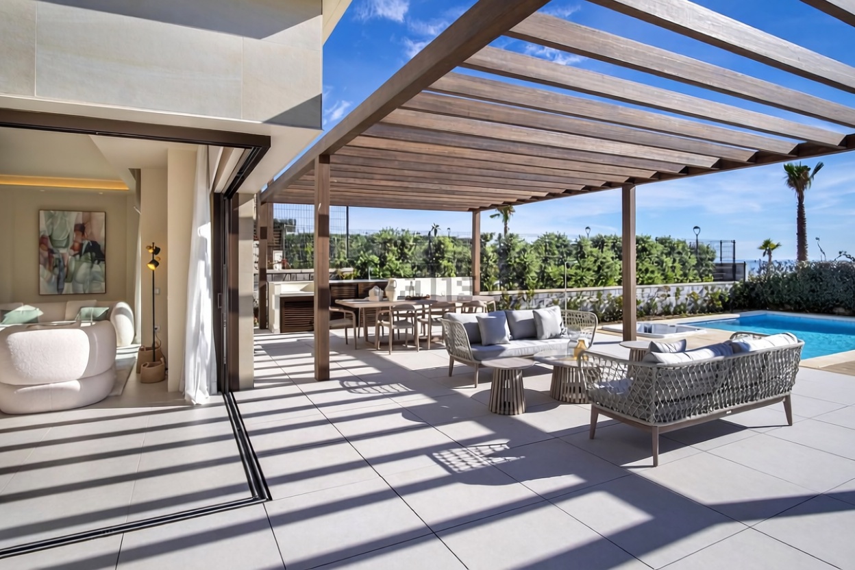 Descubra esta impressionante casa independente de 371 m2 construída, localizada em primeira linha de mar com vistas espetaculares. Com 3 andares, oferece 4 quartos espaçosos e 3 banheiros, ideal para famílias que buscam conforto e estilo. Em uma parcela de 884 m2, relaxa um belo jardim e uma piscina refrescante, perfeitos para relaxar debaixo do sol. A propriedade tem aquecimento individual, ar condicionado e armários incorporados, garantindo um lar funcional e acolhedor. O terraço é o lugar perfeito para desfrutar das vistas para o mar e os solis. Praça de garagem incluída e transteiro, tudo em um excelente estado e construído em 2024. Não perca a oportunidade de viver neste paraíso!